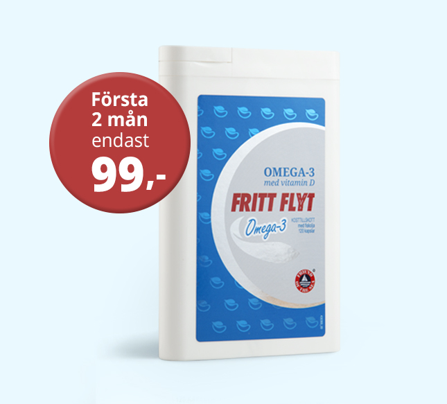 *Den gynnsamma effekten på hjärtat uppnås med ett dagligt intag på 250 mg EPA och DHA – och hjärna och syn med ett dagligt intag på 250 mg DHA. Med den rekommenderade användningen av Fritt Flyt får du dessa mängder.