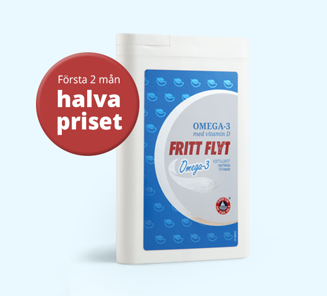 *Den gynnsamma effekten på hjärtat uppnås med ett dagligt intag på 250 mg EPA och DHA – och hjärna och syn med ett dagligt intag på 250 mg DHA. Med den rekommenderade användningen av Fritt Flyt får du dessa mängder.