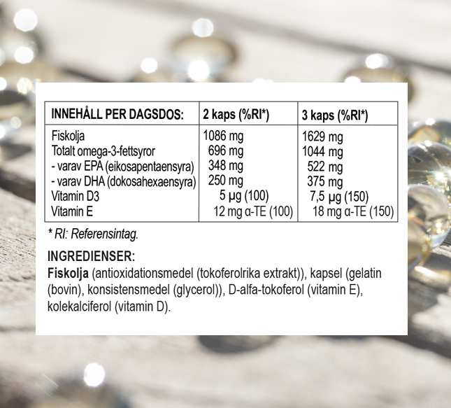 - Fiskolja från hållbart fiske. Certificerad av Friend of the Sea